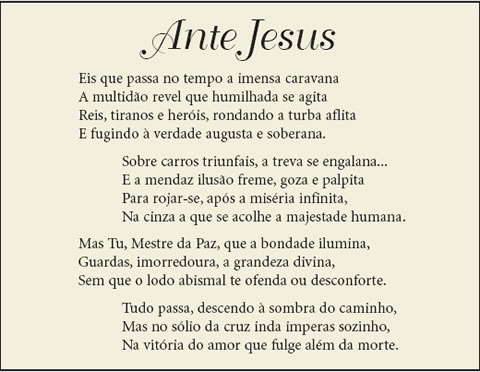 expressos no poema Ante Jesus, reproduzido nesta página.