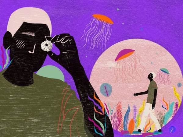 parecidas com águas-vivas, no fundo de um oceano antigo).