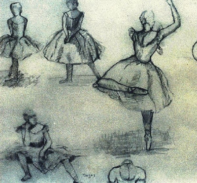 Some posing ballerinas (drawing) by Degas