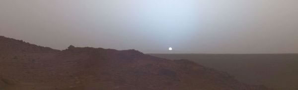 Por do sol em Marte fotografado da cratera Gusev.