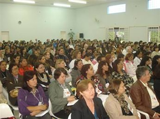 promotor em Marília, SP, falando sobre A Pedagogia do Amor. Ambos