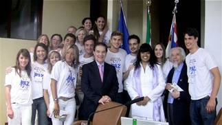 espíritas com a camiseta do Movimento Você e a Paz, por
