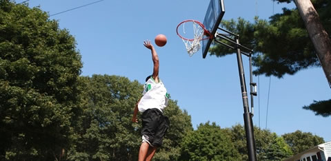 e ele não podia participar dos times de basquete ou das aulas