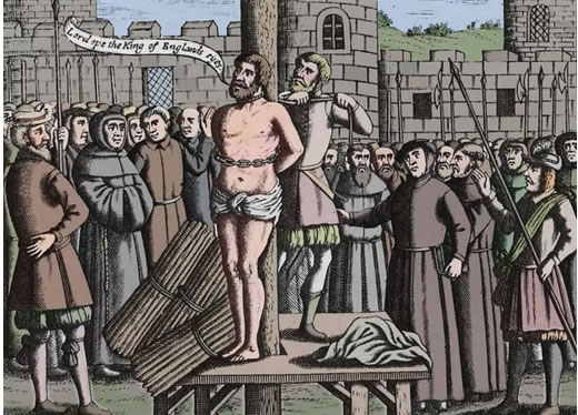 a Inglaterra. Ele foi acusado de heresia e queimado vivo.