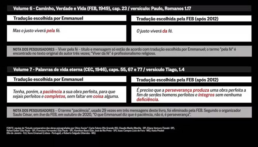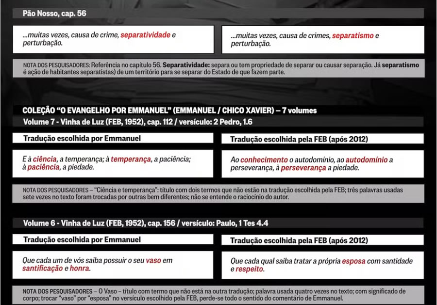 mudanças nos originais entregues à FEB. O problema