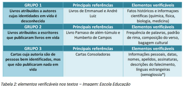 das psicografias. Para esse fim, dividiram os documentos em 3 grupos,